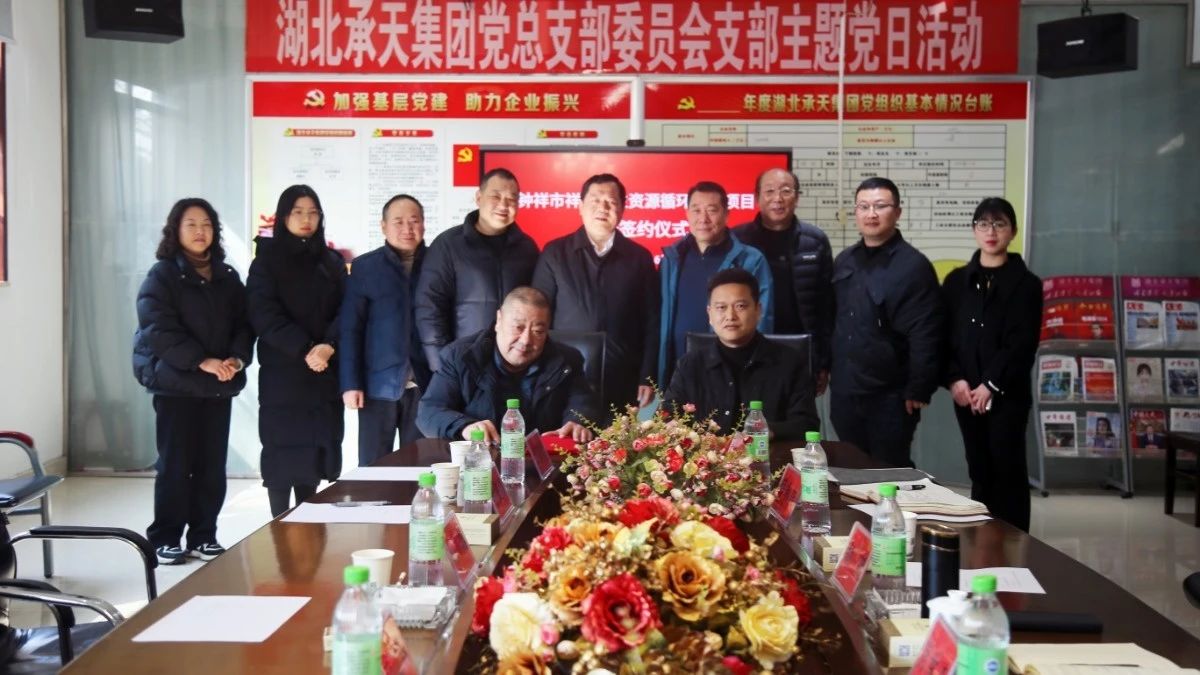 3月6日,钟祥市再生资源循环利用项目合作正式签约。钟祥市供销合作社联合社党组书记、主任冯道春,副主任杨兵,二级主任科员赵自云,副科长李雯靖,祥农再生资源公司总经理高永泉、副经理刘月琴,承天集团董事长肖举涛、执行董事刘大全、总经理胡朕、行政部经理薛彩燕,承天再生资源公司总经理黄涛等团队成员共同见证了这一重要时刻。